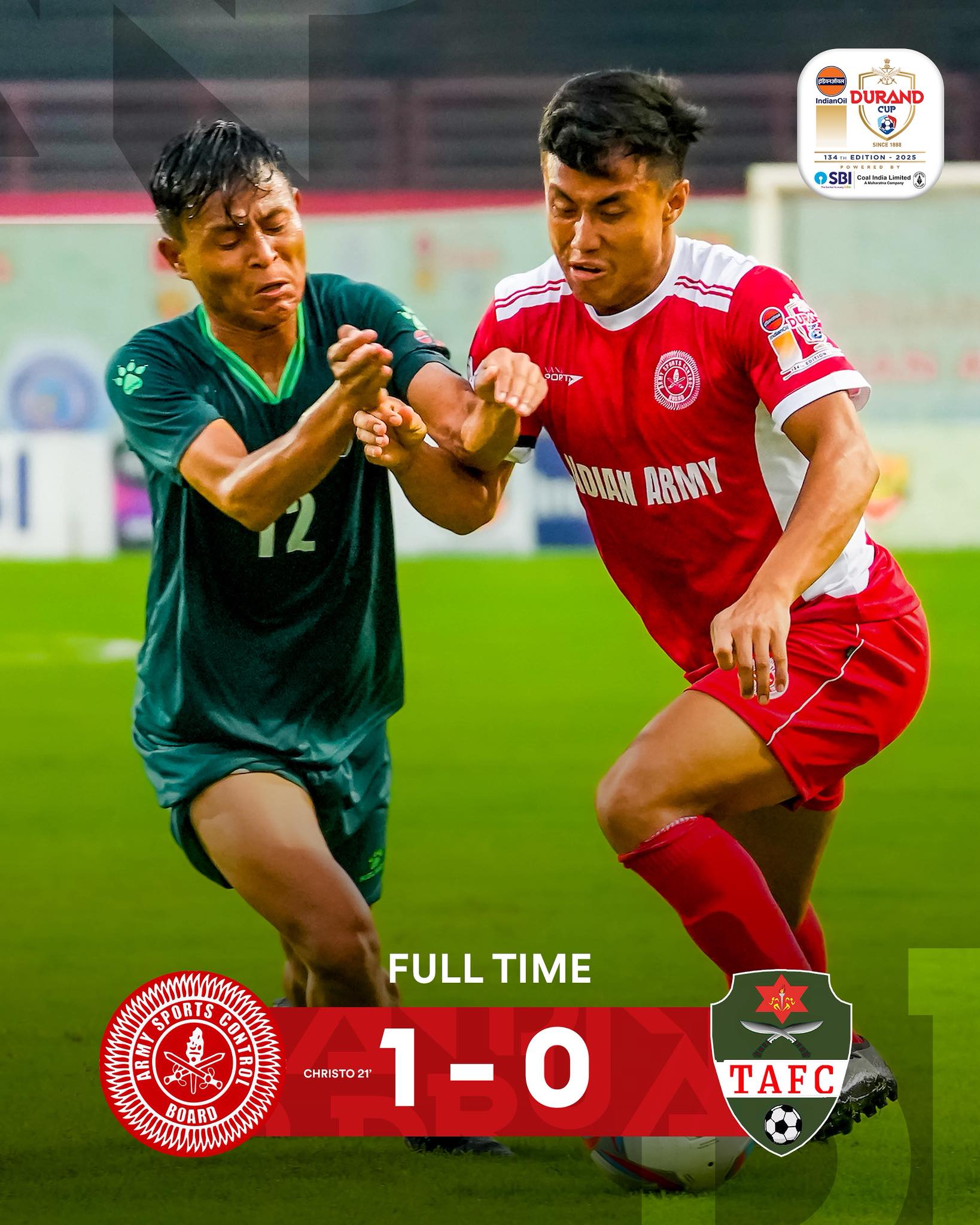 इण्डियन आर्मीको दोस्रो खेलमा यो पहिलो जित हो । इण्डियन आर्मीले पहिलो खेलमा जमशेदपुरसँग हार बेहोरेको थियो । ३ अंकका साथ इण्डियन आर्मी समूह ‘सी’ को दोस्रो स्थानमा उक्लिएको छ ।
