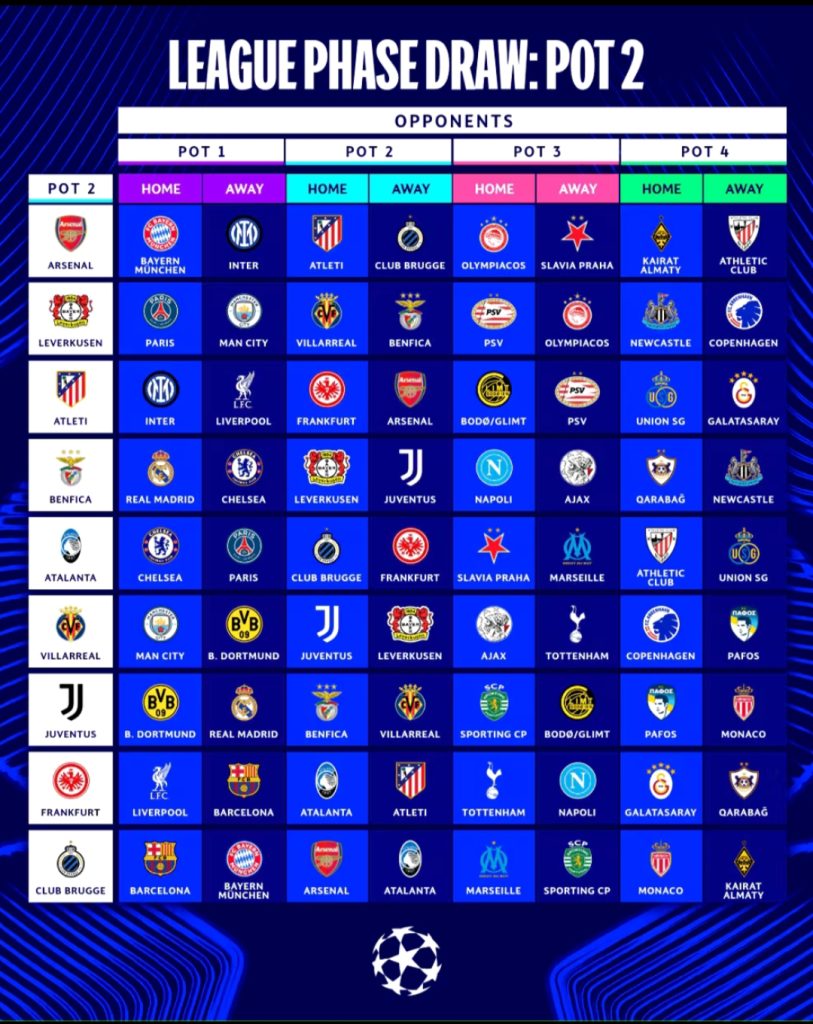 चेल्सीले बार्सिलोना र बायर्न म्युनिखजस्ता बलिया क्लबहरूसँग खेल्नुपर्नेछ। आर्सनलले पनि ह्यारी केनको बायर्न म्युनिख र इन्टरसँग खेल्नेछ।