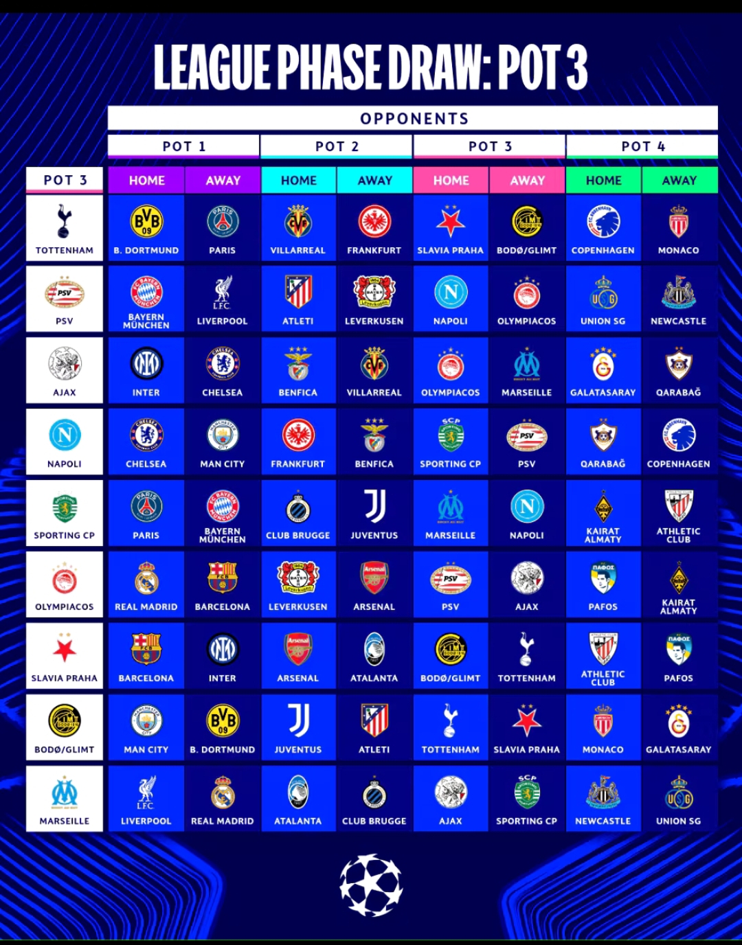 त्यस्तै टोटेनहम र न्युक्यासलले साविक विजेता पेरिस सेन्ट-जर्मेन (पिएसजी) सँग खेल्नेछन्।