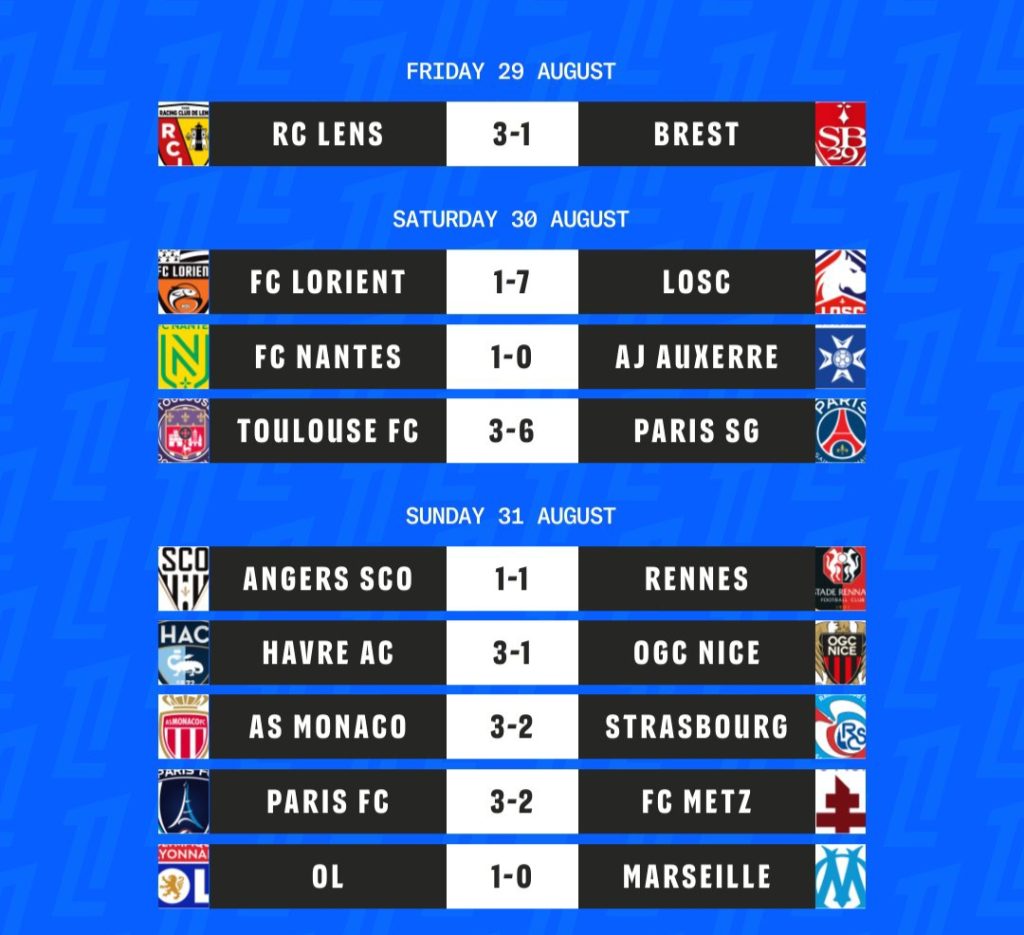 लगातार ३ खेल जितेको पिएसजी लिग वानको शीर्ष स्थानमा कायम छ। अर्काे खेलमा लिलले ७७औं मिनेटपछि लगातार ५ गोल गर्दै लोरेन्टलाई ७-१ ले हराएको थियो।