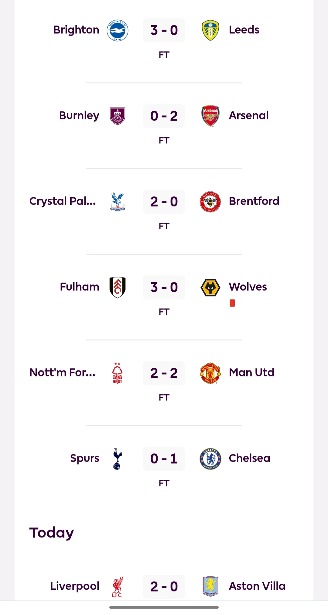 यो जितसँगै लिभरपुल (१८) अंक तालिकाको तेस्रो स्थानमा पुगेको छ। तर टोली शीर्ष क्लब आर्सनलभन्दा ७ अंकले पछि छ । एस्टन भिल्ला भने ११औं स्थानमा छ।