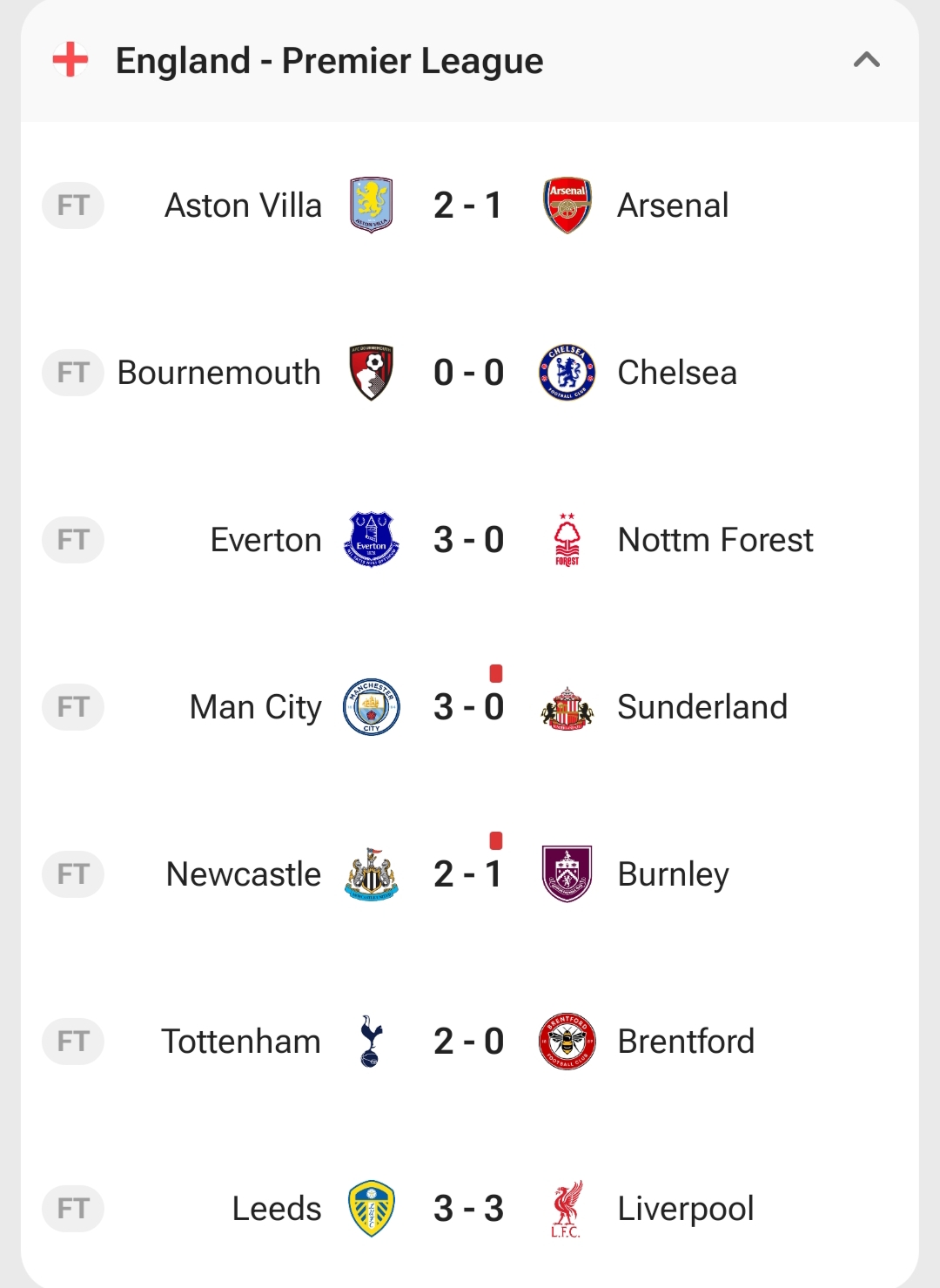 प्रिमियर लिगमा शनिवारको नतिजा र अंक तालिकाका शीर्ष १२ टोली
