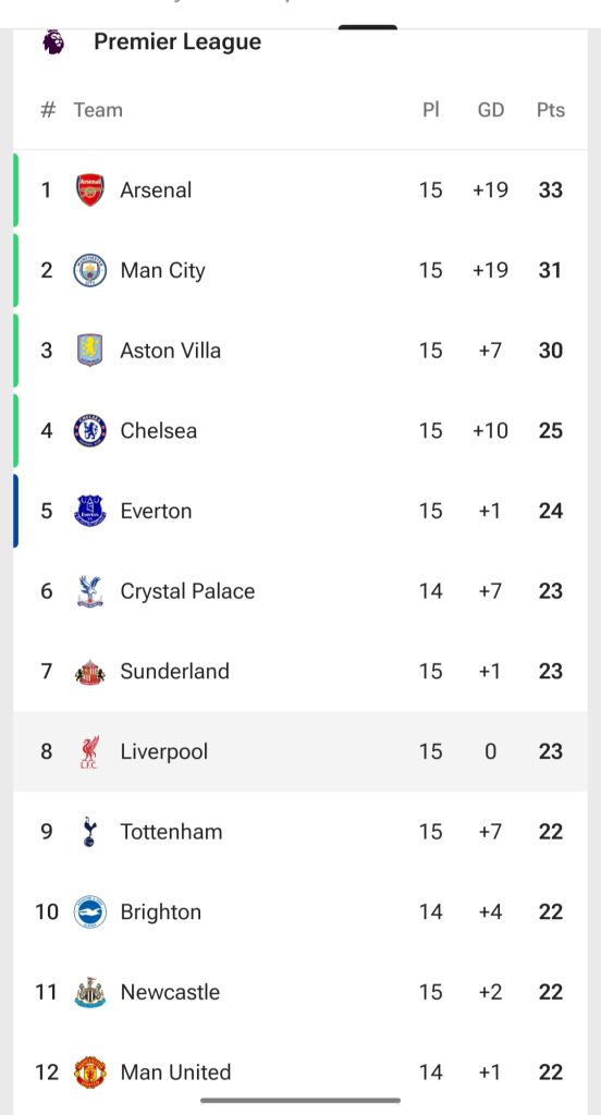 यो बराबरीपछि लिभरपुल लिगको आठौँ स्थानमा छ। शीर्ष ४ मा रहेको टोली भन्दा लिभरपुल २ अंकले पछि छ । लिड्स १६औँ स्थानमा उक्लिएको छ ।