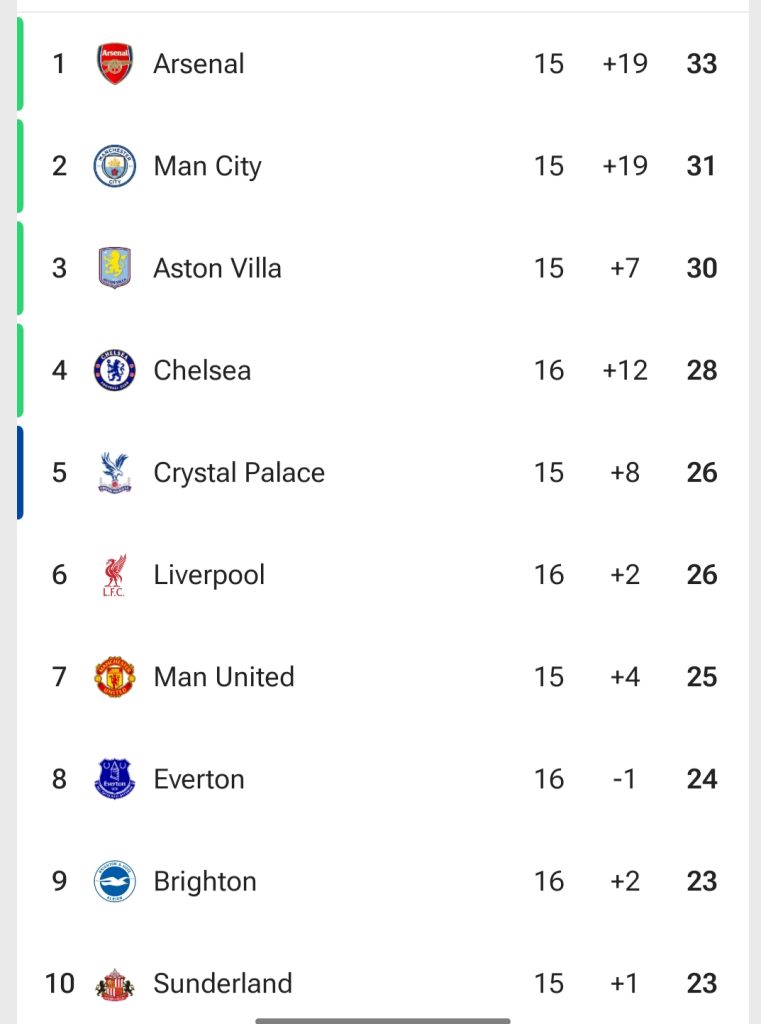 यो जितसँगै चेल्सी तालिकाको चौथो स्थानमा उक्लिएको छ। चेल्सी एभर्टनभन्दा ४ अंकले अगाडि । एभर्टन आठौँ स्थानमा झरेको छ।