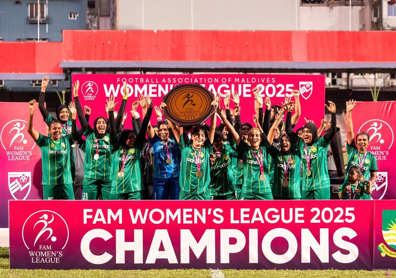 काठमाडौं (हाम्रो खेलकुद)- नेपाली राष्ट्रिय महिला टोलीका सदस्य रेखा पौडेल र दीपा शाहीसम्मिलित माजिया माजिया स्पोर्ट्स एन्ड रिक्रिएसनले माल्दिभ्सको एफएएम महिला फुटबल लिगको उपाधि जितेको छ।