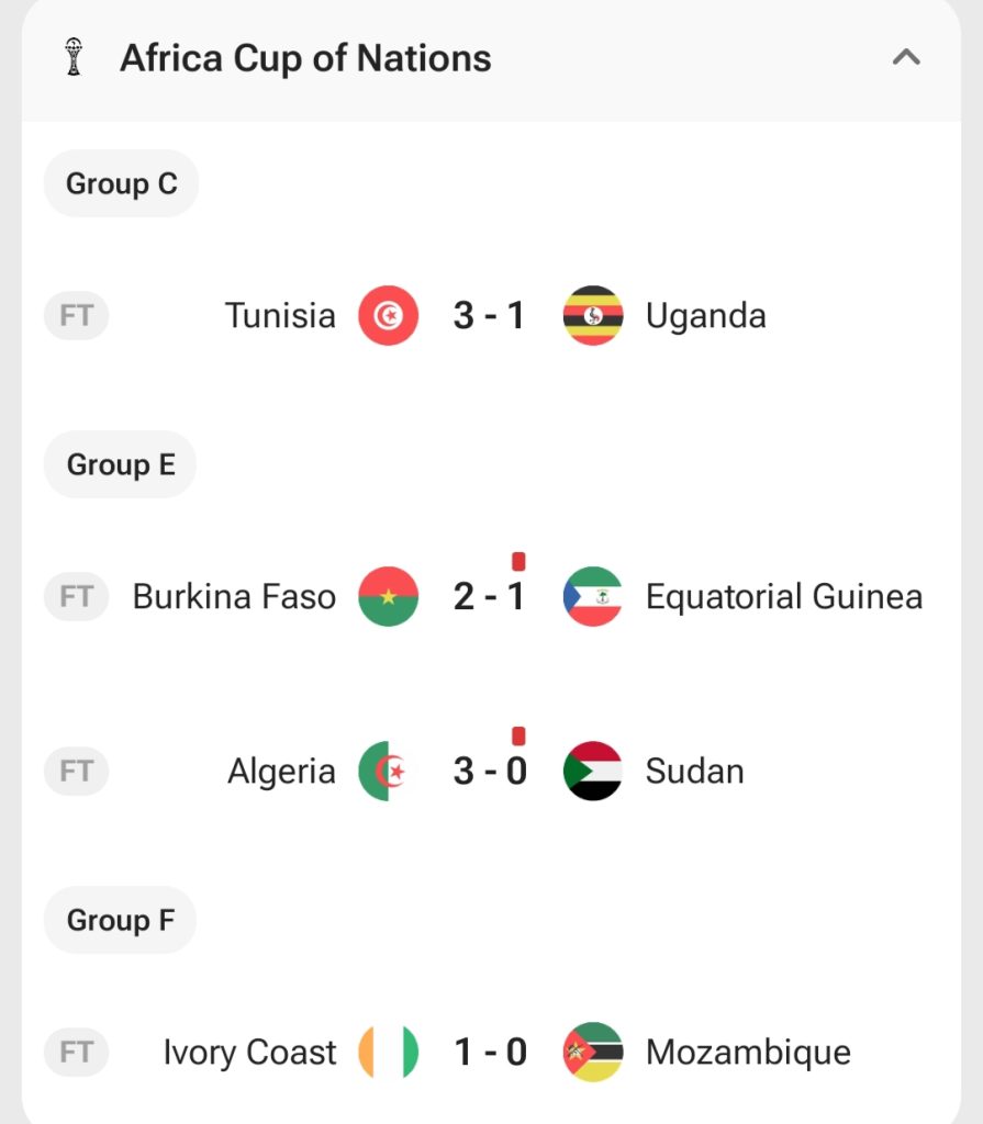 एफकोनका अन्य खेलमा ट्युनिसिया, ब्रुकिना फासो, अल्जेरिया र आइभोरी कोस्ट विजयी भएका छन्।