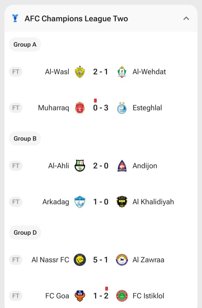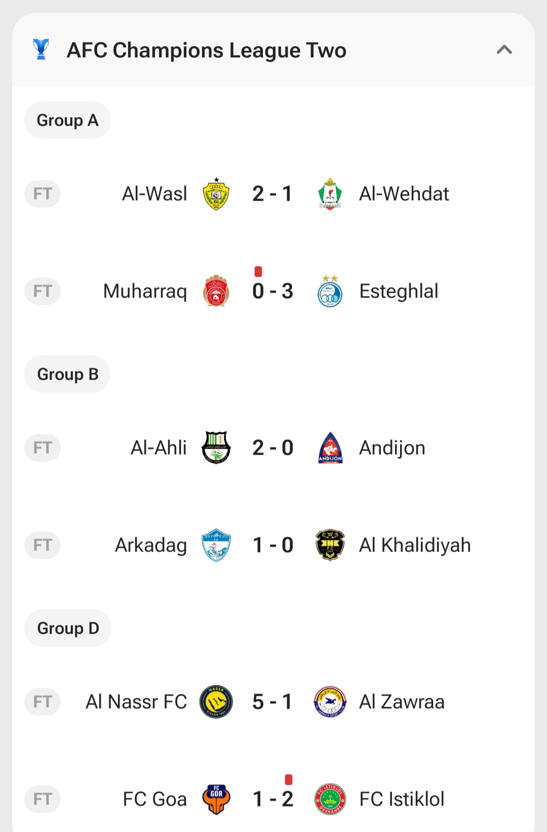 एएफसी च्याम्पियन्स लिगमा अन्य खेलका नतिजा