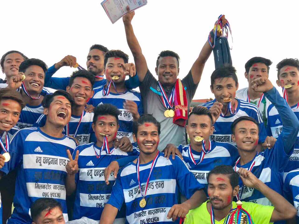 चितवन (हाम्रो खेलकुद) – साविक विजेता नारायणगढ फुटबल क्लब (एनएफसी)ले चितवन जिल्ला लिग फुटबलको उपाधि जितेको छ । नारायणगढको क्याम्पाचौरमा सोमबार भएको फाइनलमा एभरेष्ट क्लबलाई टाइब्रेकरमा ४–२ मा हराउँदै एनएफसीले उपाधि रक्षा गरेको हो ।
