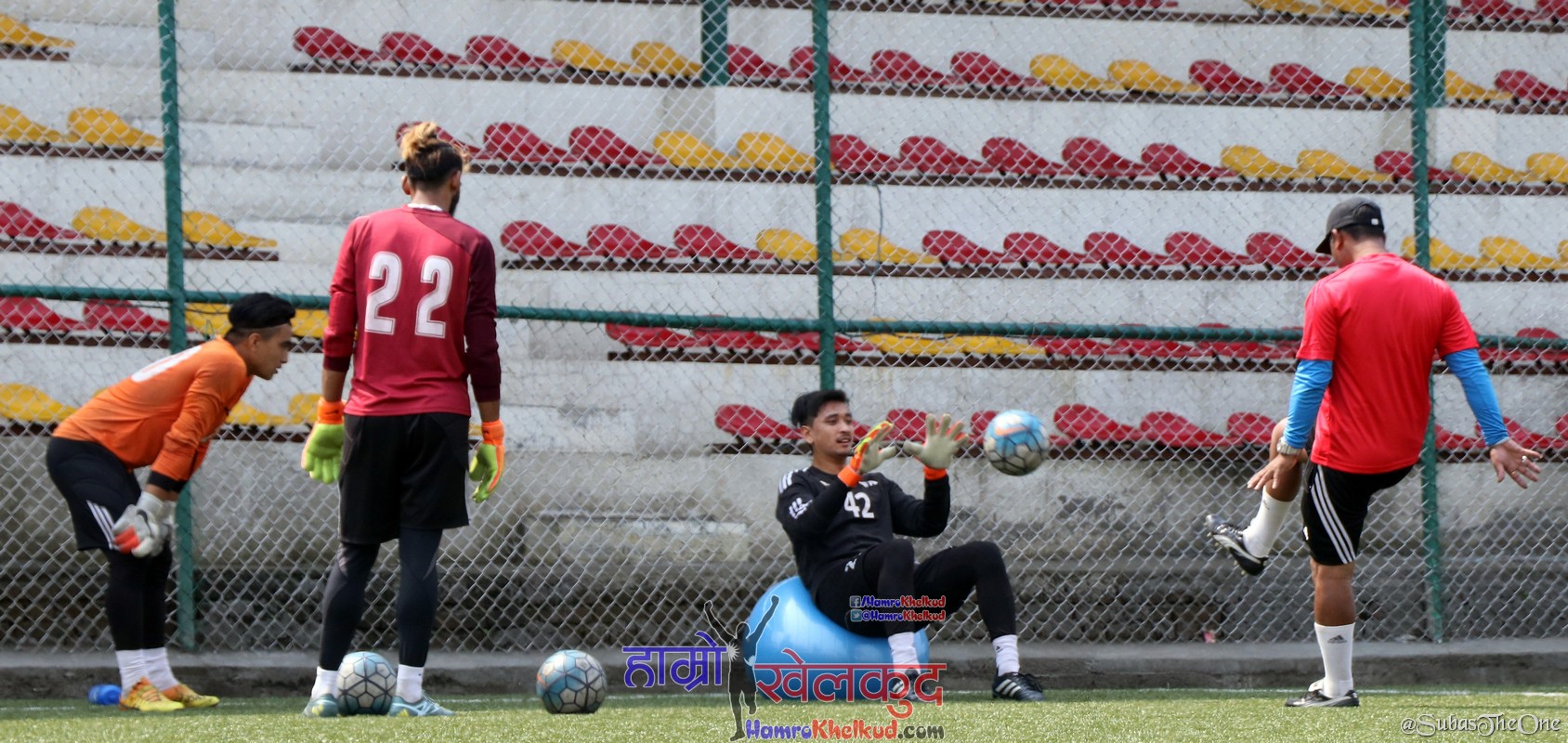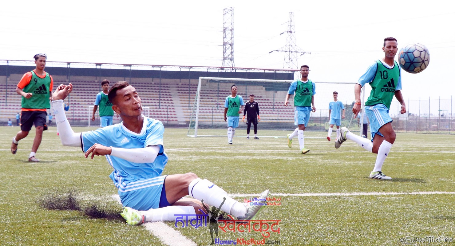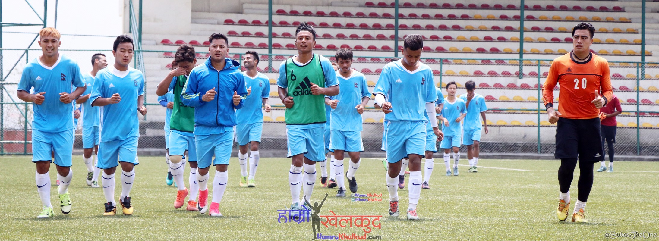 काठमाडौँ (हाम्रो खेलकुद) – एएफसी एसियन कपको तयारीका लागि नेपाली राष्ट्रिय फुटबल टोलीले सातदोबाटोस्थित एन्फा कम्प्लेक्सको मैदानमा प्रशिक्षण गरिरहेको छ। नेपालले जुन १३ तारिखमा यमन विरुद्ध छनोट चरणको दोश्रो खेल खेल्दै छ।