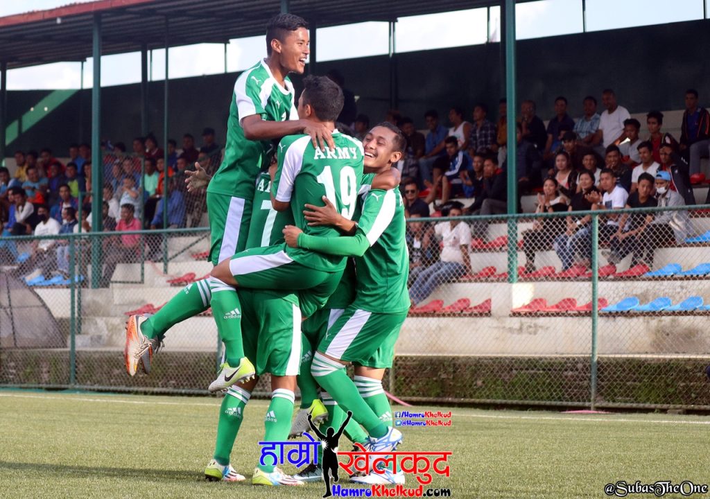 आर्मीलाई लगातार दोस्रो जित दिलाउन प्रिजन तामाङ, दिनेश योन्जन, दोर्जे तामाङ र रोमन लिम्बुले समान एक–एक गोल गरे । आर्मीले एक गोल आत्मघाती उपहार पायो । मनाङका लागि आदित्य शाक्यले एक गोल फर्काए । मनाङविरुद्ध एकतर्फी जित निकाल्ने क्रममा आर्मीले २० औं मिनेटमा प्रिजनको गोलबाट आर्मीले पहिलो हाफमा १–० को अग्रता बनाएको थियो ।