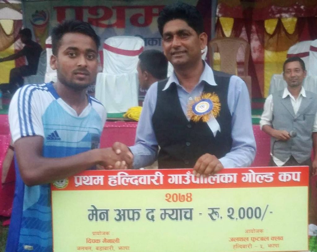 त्यस्तै प्रतियोगिताको सर्वोत्कृष्ट खेलाडीले ६ हजार तथा उत्कृष्ट गोलकिपर, रक्षक, मिडफिल्ड, फरवार्ड र प्रशिक्षकले समान ४ हजार रुपैयाँ पाउनेछन् । जलथल एफसीको आयोजनामा जारी प्रतियोगितामा युवा जागृति र विर्ता युनाइटेडबीच दोस्रो सेमिफाइनल आइतबार हुनेछ ।