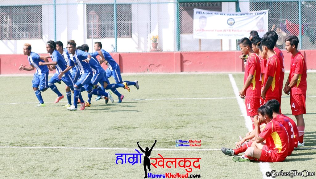 काठमाडौँ (हाम्रो खेलकुद) – साविकको विजेता त्रिभुवन आर्मी क्लब र सिएमजी क्लब संकटा दोस्रो ललित स्मृति यु–१८ फुटबल प्रतियोगिताको फाइनलमा प्रवेश गरेका छन्। सातदोबाटोस्थित एन्फा कम्प्लेक्सको खेल मैदानमा शनिबार भएको सेमिफाइनलमा त्रिभुवन आर्मी क्लबले अर्काे विभागीय नेपाल पुलिस क्लबलाई तथा संकटाले फ्रेन्डस् क्लबलाई पराजित गर्दै उपाधि नजिक पुगेको हो।