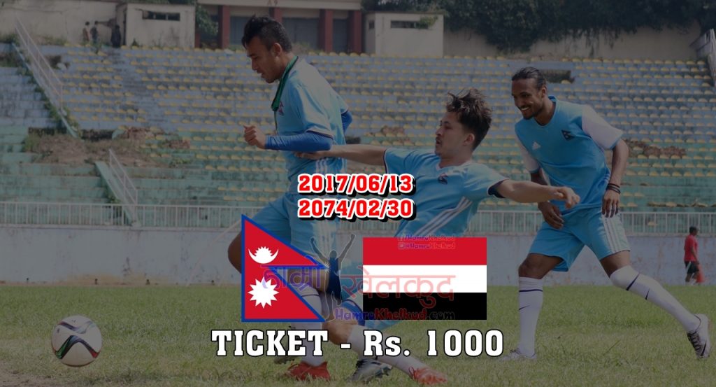 काठमाडौँ (हाम्रो खेलकुद) – एएफसी एसियन कपको छनोट चरण अन्तर्गतको दोश्रो खेलमा नेपालले यमनको सामना गर्दैछ। हलचोक स्थित एपीएफ रंगशालामा हुने उक्त खेलको लागि टिकट विक्री हिजो बाट सुरु भइसकेको छ।