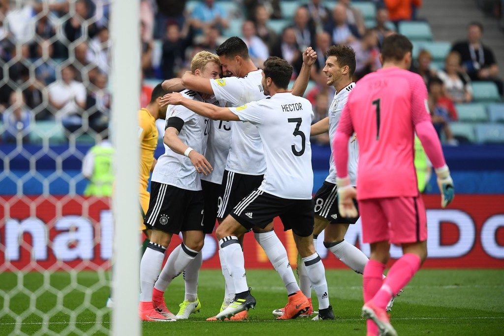 खेलको पाँचौ मिनेटमा लार्स स्टीन्डलको गोलमा अग्रता लिएको जर्मनीले ४१औं मिनेटमा बराबरी गोल खाएको थियो। टम रगीचले अष्ट्रेलियाका लागि बराबरी गोल फर्काएका थिए। खेलको मध्यान्तर नजिकिदै गर्दा अष्ट्रेलियाका मास्सिमो लुओंगोले बक्सभित्र फल हानेपछि जर्मनीले पेनाल्टी पाएको थियो। उक्त पेनाल्टीलाई कप्तान जुलियन ड्रयाक्स्लरले गोलमा परिणत गर्दै जर्मनीलाई खेलमा पुन: अग्रता दिलाएका थिए।