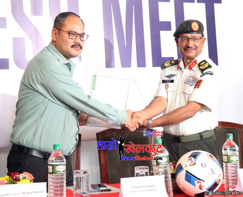 प्रायोजन सम्झौतापत्रमा नेपालमा बजाज बाइकको अधिकृत बिक्रेता हंसराज हुलासचन्द प्रालिका उपप्रमुख योगेन गुरुङ र सैनिक तथा तालिम केन्द्रका उपरथी देव कुमार सुवेदीले हस्ताक्षर गरे। सम्झौता अनुसार क्लबले नगद लिनेछैन भने जर्सी लगायत खेलसामग्री प्राप्त गर्नेछ। प्रायोजनबापत अब आर्मी क्लबले खेल्ने सम्पूर्ण प्रतियोगितामा बजाज पल्सर लोगो अंकित जर्सी तथा खेल सामग्रीहरु प्रयोग गर्नेछ।