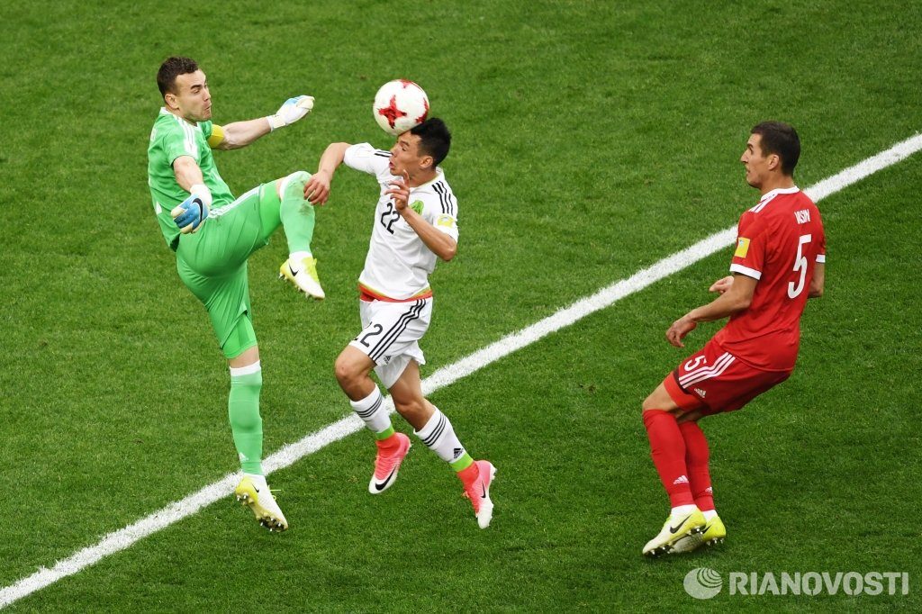 निकै प्रतिस्पर्धात्मक खेलमा रसियाले पहिलो अग्रता लिएको थियो। एलेक्जेन्डर सामेडोभले खेलको २५औं मिनेटमा गोल गर्दै घरेलु टोलीलाई अगाडी बढाएका थिए। तर उक्त गोलको ५ मिनेट बित्न नपाउँदै मेक्सिको खेलमा फर्कियो। नेस्टर अराउजोले ३०औं मिनेटमा गोल गर्दै खेललाई बराबरीमा ल्याएका थिए।