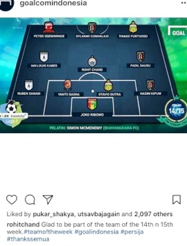 यसअघि १३ औं साताको उत्कृष्टमा पनि उनी उत्कृष्ट ११ मा समेटिएका थिए । यो सिजन पर्सिजा पुगेयता उनी उत्कृष्ट ११ मा परेको त्यो पहिलो पटक थियो । लिगा १ मा २० टोलीको सहभागिता छ । साउन १ गते रोहितकै गोलमा पर्सिजा जकार्ताले पुसामानिया बोर्निओलाई १–० ले हराएको थियो ।