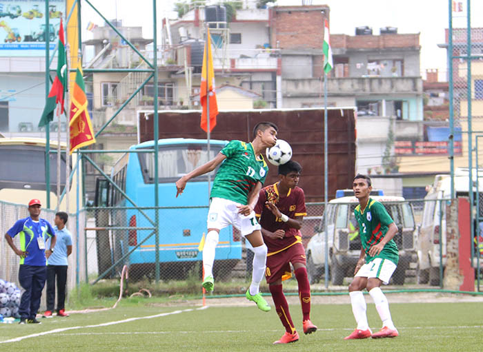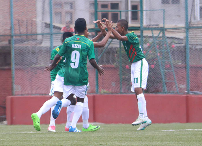 समुह ‘ए’ को खेलको सुरुवात देखि हावी भएको बंगलादेका लागि मिडफिल्डर मोहम्मद फोयसल अहमद फहिमले ह्याट्रिक गरे ।