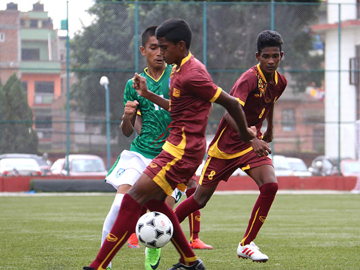 काठमाडौँ (हाम्रो खेलकुद) – सातदोबाटो स्थित एन्फा टेक्निकल सेन्टरको कृतिम खेल मैदानमा आजबाट सुरु भएको साफ यू-१५ च्याम्पियनसिपको पहिलो खेलमा बंगलादेशले श्रीलंकालाई ४-० ले पराजित गरेको छ ।