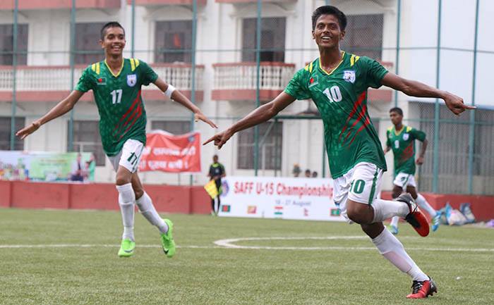 ललितपुर – बंगलादेश राजधानीमा जारी साफ यू १५ फुटबल च्याम्पियनसिपअन्तर्गत समूह ‘ए’ को समूह विजेता बनेको छ । सातदोबाटोस्थित एन्फा कम्प्लेक्समा रहेको क्रृतिम मैदानमा भुटानलाई ३–० ले हराउँदै बंगलादेश समूह विजेता बनेको हो ।
