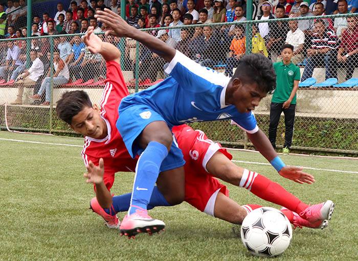 २७ औं मिनेटमा गोल कप्तान विक्रमप्रताप सिंहले गोल गर्दै भारतलाई अग्रता दिलाएका थिए । विके ओरामको प्रहार नेपाली गोलकिपरले रोकेपनि पूर्ण नियन्त्रणमा राख्न नसक्दा वित्रम हेडमार्फत गोल गरेका थिए । ४१ औं मिनेटमा नेपाली युवा टोलीले गोल फर्काएको थियो । कप्तान रोशन रानामगरले नेपालका लागि बराबरी गोल गरेका थिए ।