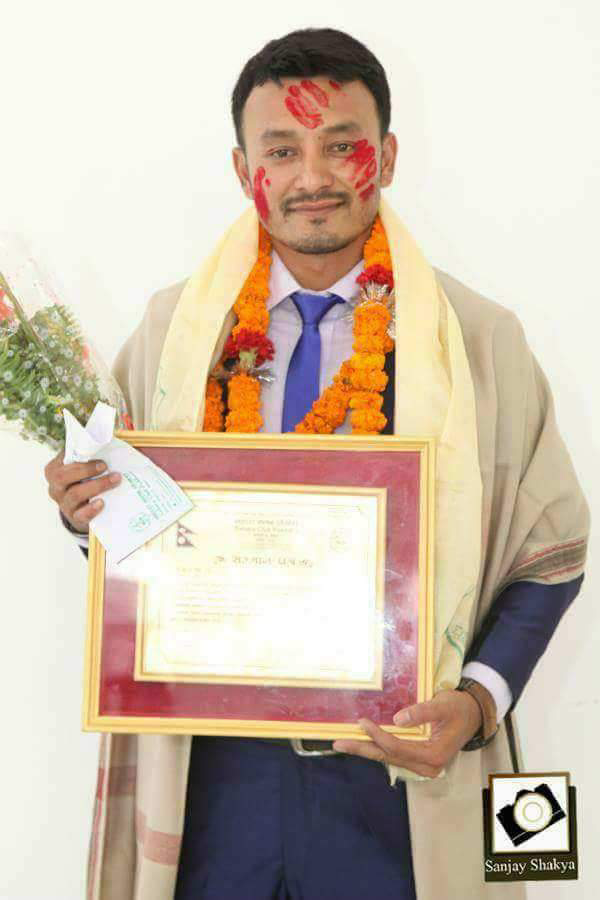 युवा तथा खेलकुद मन्त्रालयका सचिव महेश प्रसाद दाहाल, क्लबका संस्थापक अध्यक्ष वसन्त थकाली, सल्लाहकार प्रकाश शेरचन, क्लवका अध्यक्ष विरभद्र आचार्यले ताम्रपत्र सहित दोसल्ला, फुल माला तथा खादा लगायर श्रेष्ठ सम्मान गरेका हुन । पुरस्कारको राशी नगद १५ हजार ५ सय ५५ रहेको छ । श्रेष्ठले पुरस्कार राशीमा ४ हजार ४ सय ४५ रुपैया थप गरी २० हजार सहारा एकेडेमीको लागि आर्थिक सहयोग गर्ने उद्घोष गरे । पुरस्कृत श्रेष्ठले सम्मानले आफुलाई अझ बढी खेल पत्रकारितामा जिम्मेवारी बढेको बताए ।