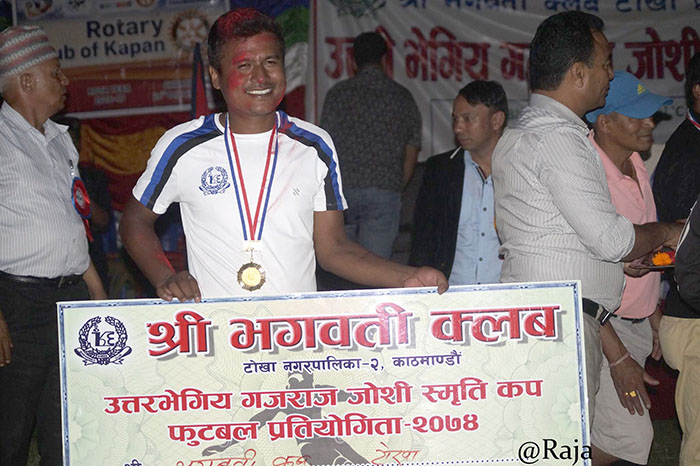 विजयी टोली भगवतीले उपाधिसहित एक लाख रूपैयाँ प्राप्त गर्यो । विजेता खेलाडीहरुलाई काँग्रेस महामन्त्री शशांक कोइरालाले पुरस्कार तथा ट्रफी वितरण गरे । काठमाडौंको उत्तर भेगका २० टोलीको सहभागिता रहेको प्रतियोगिता लिगको आधारमा सञ्चालन गरिएको हो ।