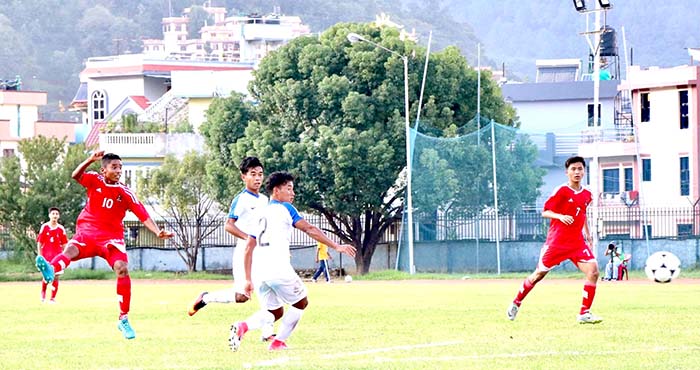 काठमाडौं (हाम्रो खेलकुद) – एएफसी यू-१६ च्याम्पियनसिप अन्तर्गत छनोट चरणको रोमाञ्चक खेलमा २-२ को बराबरी खेल्दै अंक बाँडेका छन् । नेपालका लागि बिर्जेशले दुई उत्कृष्ट गोल गरे भने दोस्रो हाफमा मैदान प्रवेश गरेका भारतीय खेलाडी हर्प्रितले भारतका लागि दुई गोल गरे । करिब एक महिना अघि साफ च्याम्पियनसिपमा दुई पटक पराजित नेपाली टोलीले भारतसँग अंक खोस्न सफल भएको छ ।