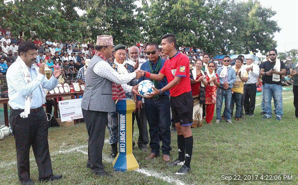 तिलोत्तमा नगरपालिकाकाका बासुदेव घिमिरे, रुपन्देही जिल्ला फुटबल सघंका अध्यक्ष कुमार केसी, आयोजक क्लबका अध्यक्ष लोक पुन लगायतले पुरस्कार वितरण गरे । प्रतियोगितामा रुपन्देही,कपिलबस्तु, र नवलपरासी जिल्लाका १६ क्लबको सहभागिता थियो ।