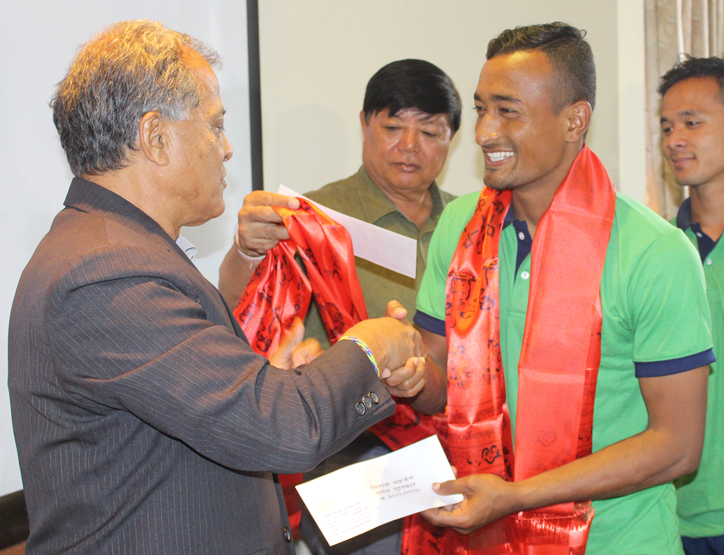 गत वर्ष कार्तिकमा मलेसियाको कुचिङमा भएको सोलिडारिटी कपको फाइनलमा मकाउलाई १–० ले हराउँदै नेपाल च्याम्पियन बनेपछि एन्फाले पुरस्कारको घोषणा गरेको थियो । फाइनलमा सुजल श्रेष्ठले गोल गरेका थिए । सरकारले भने यसअघि नै जनही ३ लाख रुपैयाँ जनही ३ लाख रुपैयाँ प्रदान गरेको थियो ।