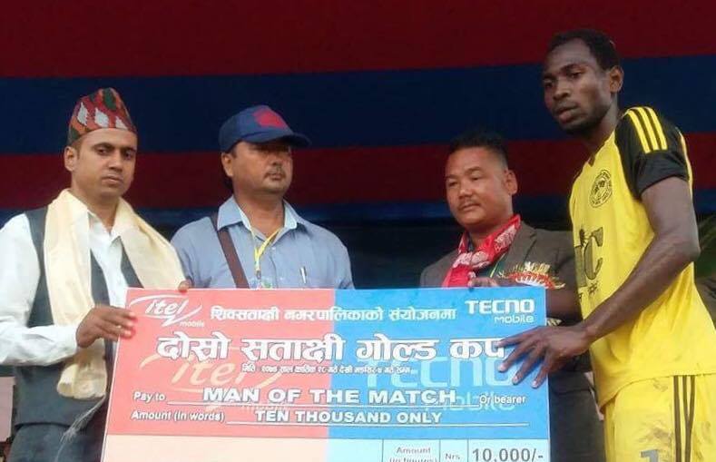 ४७ औं मिनेटमा आबाले बराबरी गोल फर्काए । उनले रुपेश केसीको पासमा गोल गरेका थिए । ७४ औं मिनेटमा आबाले नै अर्को गोल गरे । दास्रो गोलमा अमर डंगोलले पास मिलाइदिएका थिए । इन्जुरी समयमा विजयको गोलमा आबाले पास दिएका थिए । म्यान अफ दी म्याच घोषित आबाले १० हजार रुपैयाँ प्राप्त गरे ।