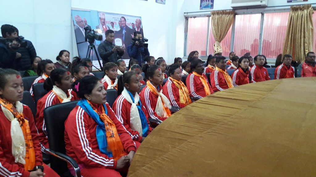 शुक्रबार २० सदस्यीय टोलीलाई अखिल नेपाल फुटबल संघ (एन्फा) का अध्यक्ष नरेन्द्र श्रेष्ठले बिदाई गरेका थिए । एन्फाले प्रतियोगिताको लागि एक साताअघि २० सदस्यीय नेपाली टिमको घोषणा गरेको थियो । प्रशिक्षणमा रहेका झरना नगरकोटी, रोशनी धिमाल, सुष्मा तामाङ र रजनी श्रेष्ठले भने अन्तिम टोलीमा स्थान बनाउन सकेनन् ।