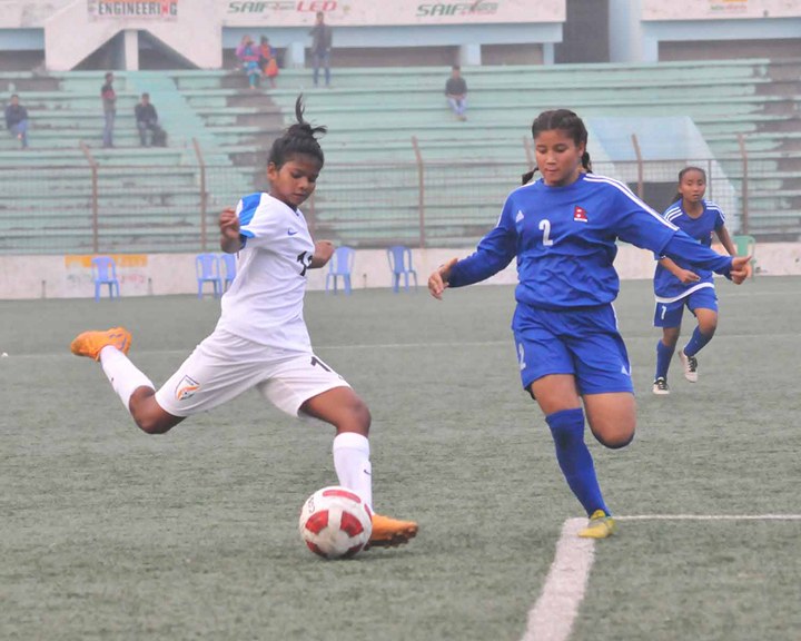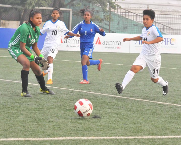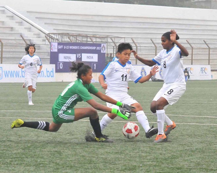 काठमाडौं (हाम्रो खेलकुद) – नेपाल बंगलादेशमा जारी साफ यु १५ फुटबल च्याम्पियनसिपबाट बाहिरिएको छ । लगातार दास्रो खेलमा लज्जास्पद हार बेहोर्दै नेपाल अन्तिम खेलअघि नै च्याम्पियनसिपबाट बाहिरिएको हो । आज भएको खेलमा नेपाल भारतसँग १०–० ले पराजित भएपछि फाइनल पुग्ने नेपालको सम्भावना समाप्त भएको थियो ।