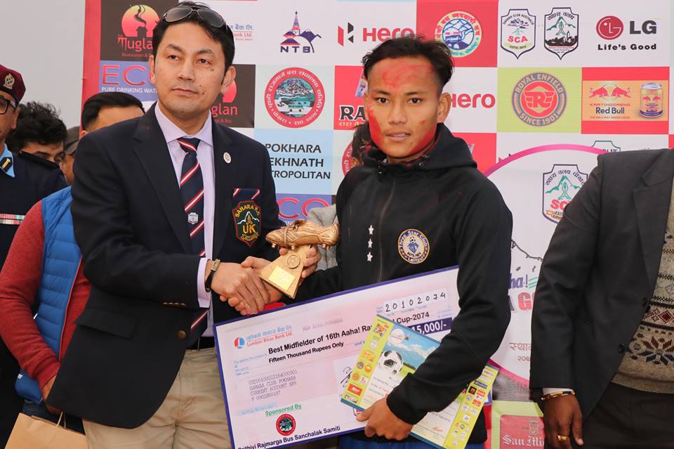 पोखरा (हाम्रो खेलकुद) – नेपाल पुलिस क्लबका विङ्गर रवी पासवान १६ औं आहा-रारा गोल्ड कपको सर्वोकृष्ट खेलाडी भएका छन् । उनले १ थान हिरो म्याक्स स्कुटर प्राप्त गरे।