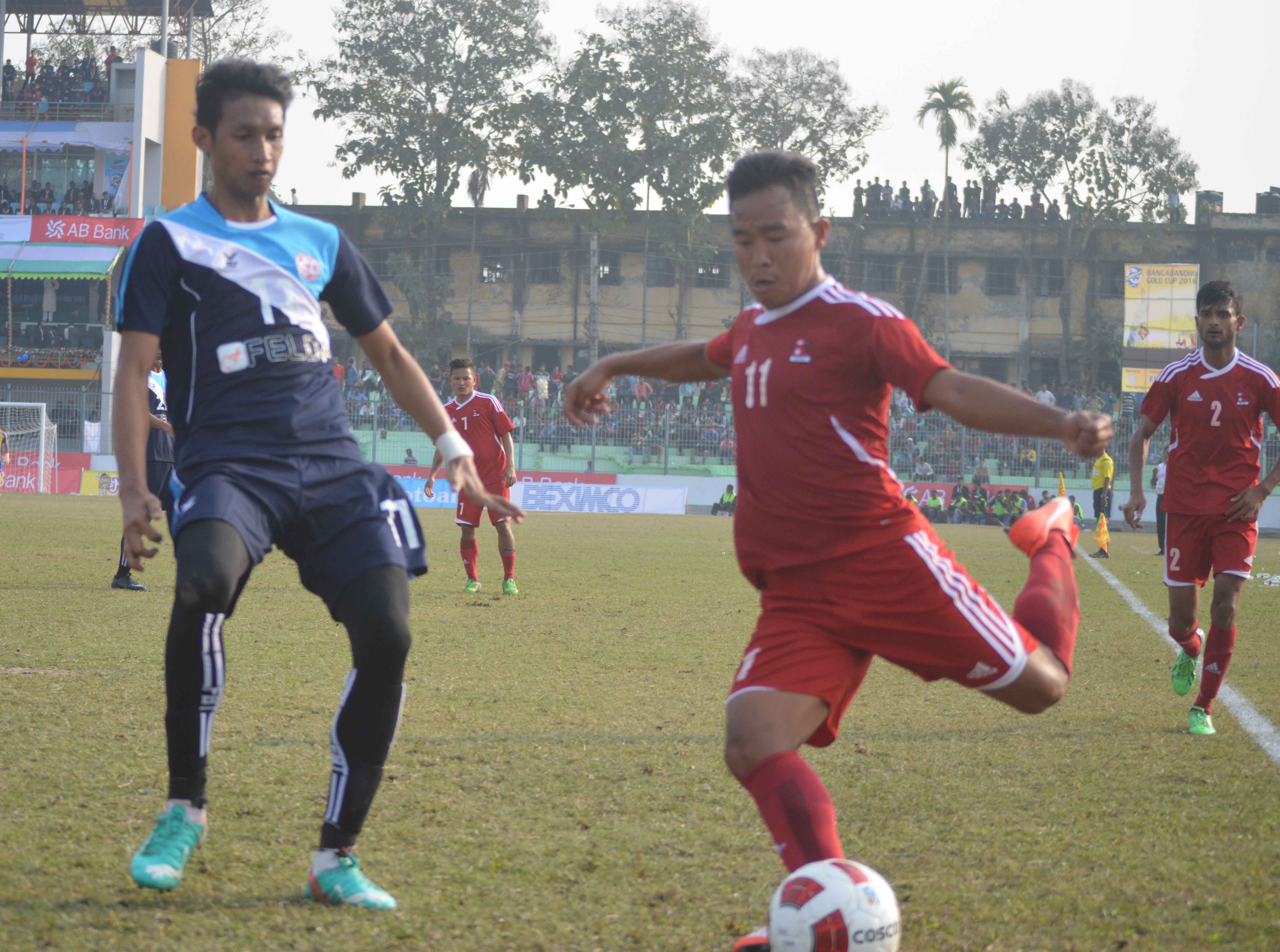 नेपाल र मलेसियाले बङ्गबन्धु गोल्डकप अन्तर्गतको पहिलो खेलमा गोलरहित बराबरी खेलेका थिए| सोहि खेलको फोटो फिचर यसप्रकार छ|