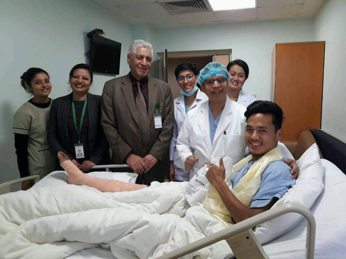 सोही दिन ग्राण्डी भर्ना भएका विक्रमको माघ २८ गते विहान अर्थोपेडिक सर्जन तथा ग्राण्डीका मेडिकल डाइरेक्टर चक्रराज पाण्डेको नेतृत्वमा शल्यक्रिया भएको थियो । शल्यक्रियाको भोली पल्टबाट विक्रमको फिजियोथेरापी सुरु गरिएको थियो ।