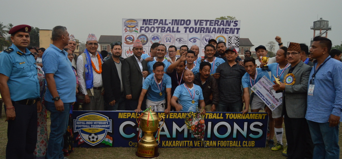 काँकरभिट्टा (हाम्रो खेलकुद) – विर्तामोड युनाइटेड भेट्रान फुटबल क्लबले नेपाल–इण्डो भेट्रान फुटबल प्रतियोगिताको उपाधि जितेको छ । काँकरभिट्टा माविको मैदानमा मंगलबार भएको फाइनलमा सुरुगां भेट्रान क्लबलाई ३–० ले हराउँदै विर्तामोडले उपाधि जितेको हो ।