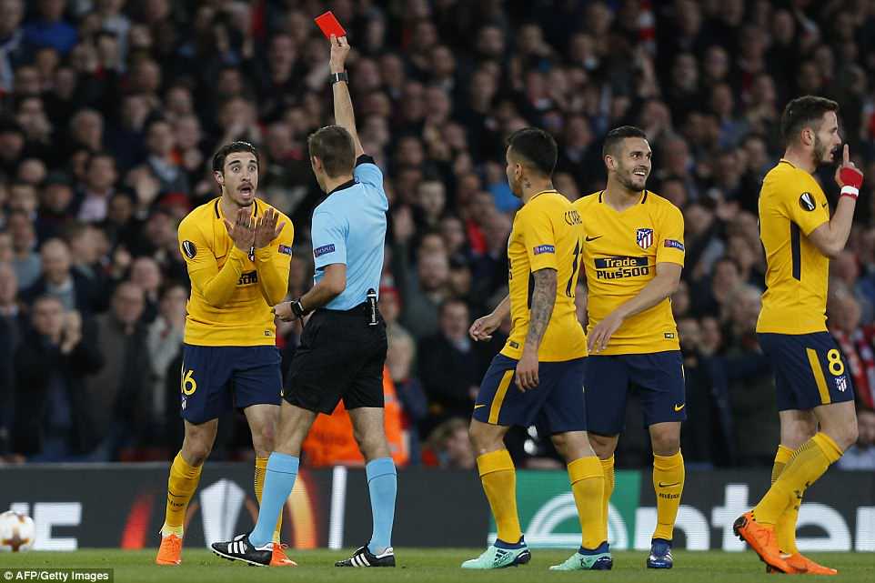 प्रशिक्षक आर्सेन वेंगरको अन्तम युरोपियन खेलमा आर्सनल खेलको सुरुआतमै बलियो स्थितिमा थियो । दशौं मिनेटमा एटलेटिकोका डिफेन्डर सिमे भर्साल्को दोहोरो पहेंलो कार्ड खाँदै मैदान बाहिरीएपछि आर्सनललाई फाइदा पुग्यो । त्यसको केहि मिनेटमा रेफ्रीले एटलेटिकोका प्रशिक्षक डिएगो सिमिओनीलाई पनि दर्शकदिर्घामा पठाए । एक खेलाडी बढी हुनाको बावजुद आर्सनलले पहिलो हाफमा अग्रता लिन सकेन ।