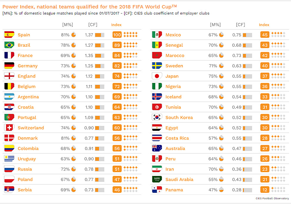 क्लबसँग कुन खेलाडीले कति खेल समय पाएको र खेलाडी कस्तो स्तरको लिगमा खेल्दैछ, इत्यादी तथ्याङ्कको आधारमा तयार पारेको रिपोर्टले स्पेनलाई बलियो दाबेदारको रुपमा प्रस्तुत गरेको हो।