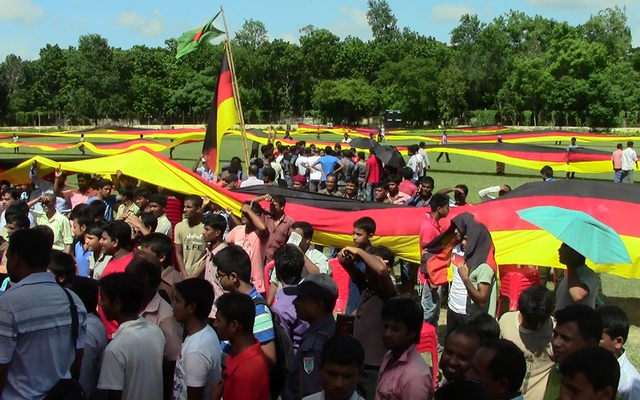 ६९ बर्षिय अम्जादले बंगलादेशको मगुरामा सयौं जर्मनी समर्थक र अन्य फुटबल समर्थकको अगाडि बिद्यार्थीको सहयोगमा सो झण्डा अनावरण गरेका हुन् । सो समारोहमा उपस्थित भएका मगुरा पुलिसका उप प्रमुख तरिकुल इस्लामले भने, ‘ ५.५ किलोमिटर लामो सो झण्डाले विद्यालयको मैदान कयौं पटक बेरेको थियो । अम्जादले आफ्नो सम्पत्ति बेचेर झण्डा बनाएका छन् । उनि एक सच्चा जर्मन समर्थक हुन् । ’