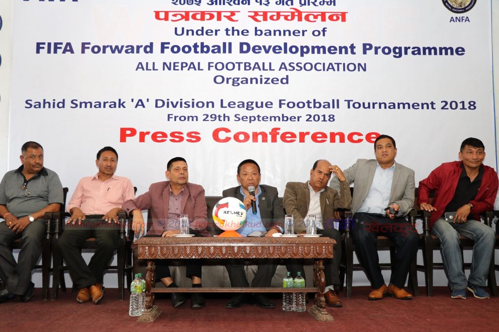 काठमाडौं (हाम्रो खेलकुद) – अखिल नेपाल फुटबल संघ (एन्फा) ले आइतबार पत्रकार सम्मेलन गर्दै असोज १३ बाट लिग सुरु गर्ने घोषणा गरेको छ । यस घोषणासँगै झन्डै ५ वर्ष रोकिएको लिग फुटबल फर्किएको छ । विगतमा ए डिभिजन लिगको पुरस्कार ७५ लाख रहेपनि यसपटक पुरस्कारमा समायोजन गरिएको छ ।
