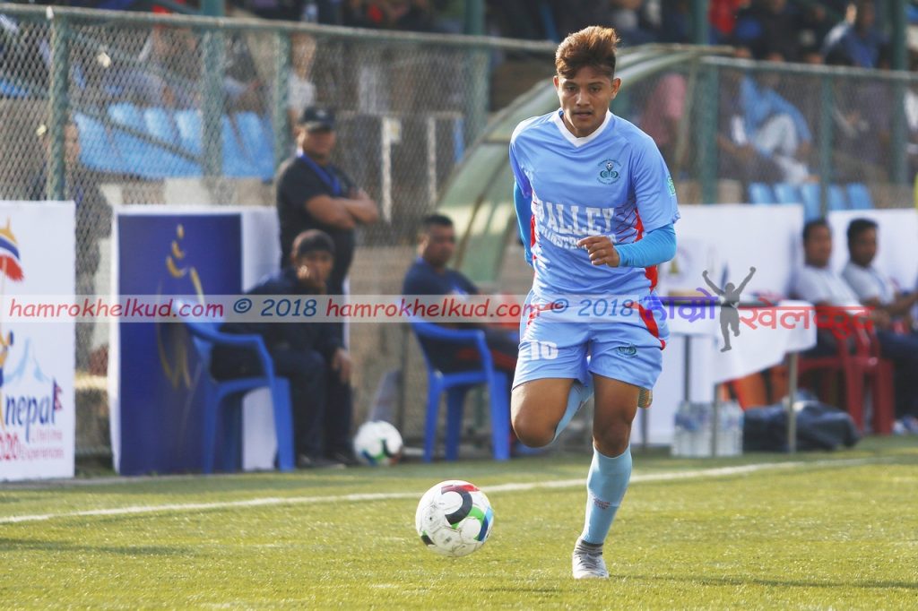 निकै प्रतिस्पर्धात्मक पहिलो हाफमा च्यासल सातौं मिनेटमा अभागी बनेको थियो । विश्व अधिकारीले पेनाल्टी क्षेत्र भित्रबाट गरेको प्रहार डिफेन्डरलाई लाग्दै क्रसबारमा ठोक्किएको थियो । लगत्तै सन्त बहादुर गुरुङले वन भर्सेस वनको स्थितिमा गोल गर्न सकेनन् । अमिर श्रेष्ठ र विमलकै वरपर रहेको च्यासलको अाक्रमणले गोल निकाल्न सकेन ।