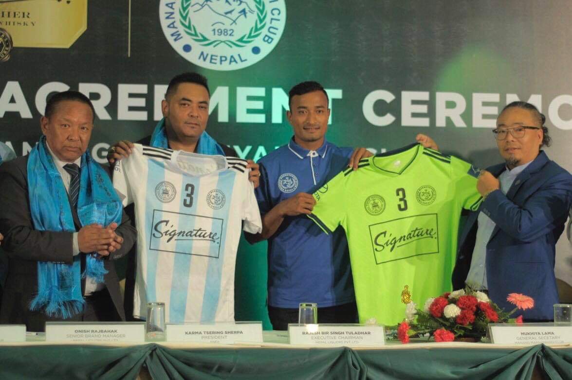 मनाङका अध्यक्ष मुखिया कान्छा गुरुङ र नेपाल लिक्वर्स प्रा लिगका कार्यकारी अध्यक्ष राजेशवीर सिंह तुलाधारले सम्झौता पत्रमा हस्ताक्षर गरेका थिए । प्रायोजन वापत सिग्नेचरले मनाङलाई २५ लाख रुपैयाँ प्रदान गर्नेछ ।