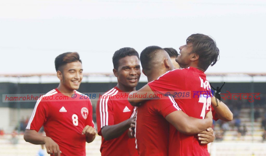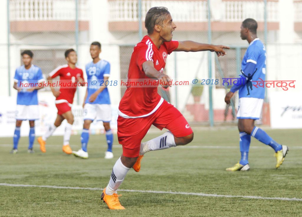 पुलिसका लागि पहिलो हाफको ३२ अौं मिनेटमा अजित भण्डारीले गोल गरेका थिए । पुलिसले पेनाल्टी क्षेत्रबाहिर पाएको फ्रिकिकमा उत्कृष्ट टिमवर्कको नमुना प्रस्तुत गर्दै गोल गरेको हो । सुमन लामाले छोटो फ्रिकिक लिँदै तेज तामाङलाई पेनाल्टी क्षेत्रको दायाँतर्फ पास दिए । तेजले सोहि पासलाई फार पोस्टमा क्रस गरे जहाँ अजितले सहजै गोल गरे ।