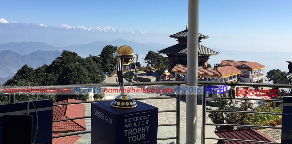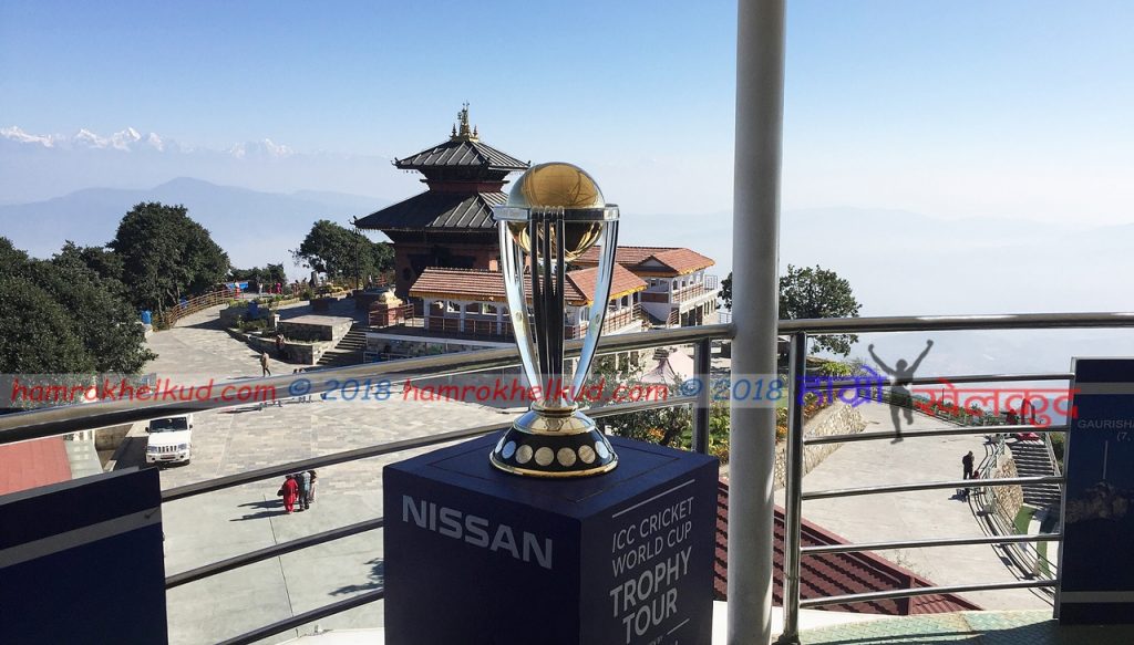काठमाडौं (हाम्रो खेलकुद) – आईसीसी विश्वकप ट्रफी काठमाडौंस्थित चन्द्रागिरि हिल्समा प्रदर्शनीका लागि राखिएको छ । अर्को वर्ष इंग्ल्यान्ड र वेल्समा हुने विश्वकपअघि ट्रफी विश्व टुरमा ल्याइएको हो ।