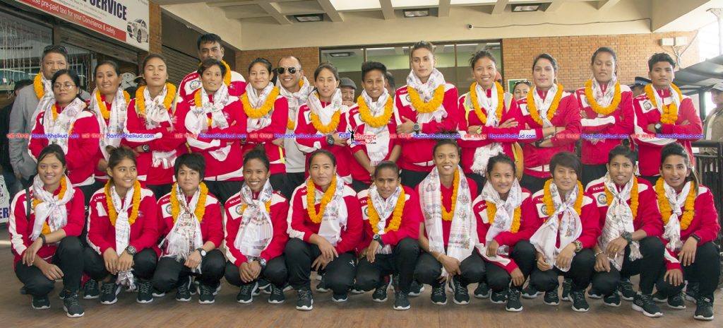 नेपाली महिला टोली बिहिबार मालिन्डो एयरलाइन्सबाट दिउसो १ बजे त्रिभुवन अन्तर्राष्ट्रिय विमानस्थलमा ओलएिको हो । नेपाली टोलीलाई अखिल नेपाल फुटबल संघ (एन्फा) का अध्यक्ष कर्माछिरिङ शेर्पा, राष्ट्रिय खेलकुद परिषदका नवनियुक्त उपाध्यक्ष पिताम्बर तिम्सिना लगायता एन्फाका पदाधिकारीले खादा र फुलमाला लगाएर स्वागत गरेका थिए ।