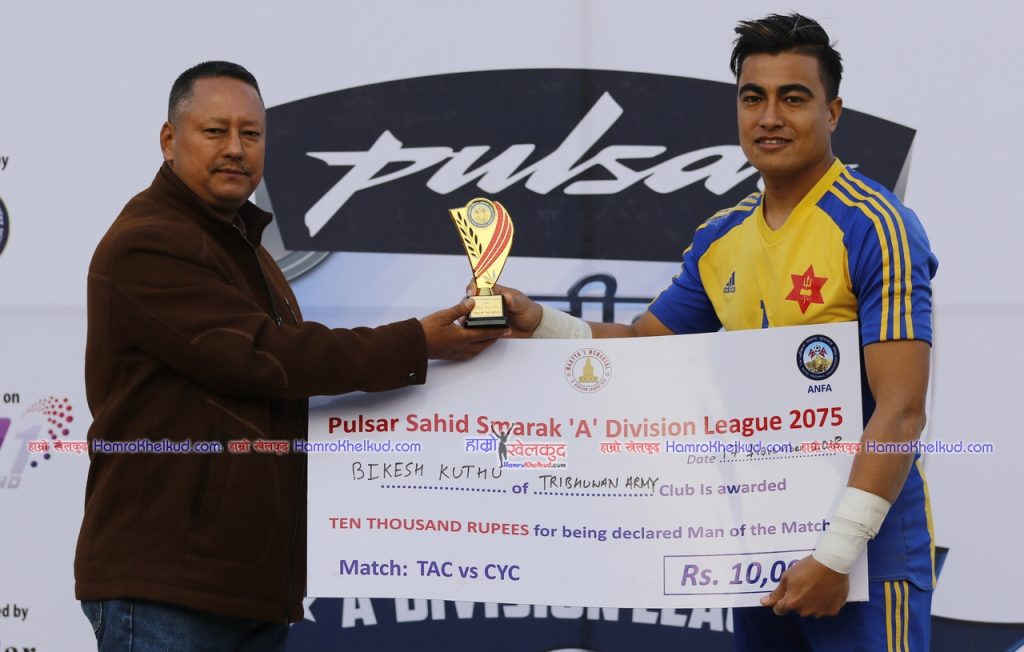 काठमाडौं (हाम्रो खेलकुद) – पल्सर सहिद स्मारक ए डिभिजन लिग अन्तर्गत शनिबार दोस्रो खेलमा त्रिभुवन आर्मी क्लबले च्यासल युथ क्लबमाथि १-० को जित दर्ता गर्यो । उक्त खेलमा आर्मीले क्लिन सिट राख्दा विकेश कुथुले प्रभावशाली प्रदर्शन गरे ।