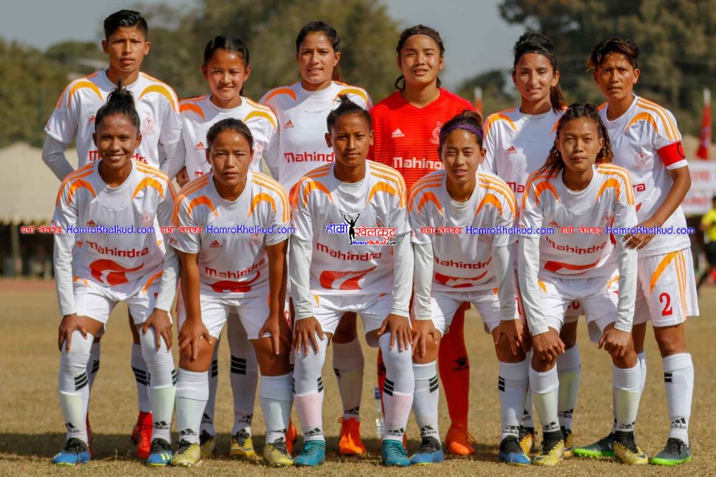 एपीएफले पहिलो हाफमा अनिता बस्नेतको गोलमा अग्रता लिएको थियो । उनले सरु लिम्बूको पासमा ४१ अौं मिनेटमा सुरुवाती गोल गरेकी थिइन् । पहिलो हाफमा एपीएफले पोस्टमा लगातार अाक्रमण गरेपनि अार्मीकी गोलरक्षक अन्जना रानामगर बाधक बनिन् ।