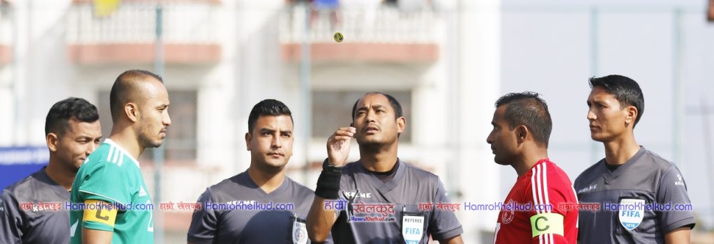 सातदोबाटोस्थित एन्फा कम्प्लेक्सको मैदानमा पुलिसले सुरुवाती समयमै अग्रता लिने अवसर चुकायो । भोला सिलवालको क्रसमा अभिषेक रिजालले खेलको सुरुवाती समयमा हेडरमार्फत गोल गर्न सकेनन् । त्यसपछि एनआरटीले पनि केहि समय पुलिसलाई दबाब दिएको थियो । १६ औं मिनेटमा बालगोपाल साहुखलको प्रहार गोलरक्षक सत्रुघन चौधरीले सहजै रोके ।