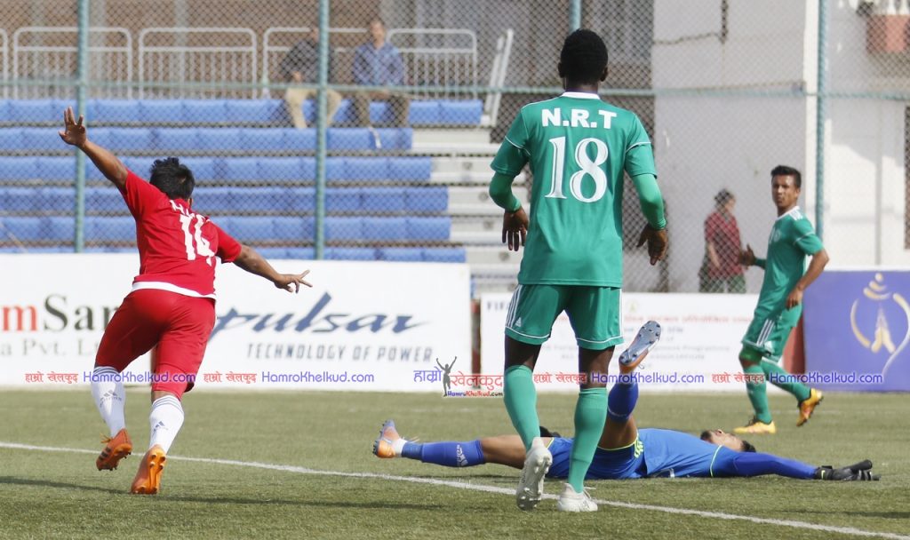 एनआरटीले ८१ औं मिनेटमा खेलमा फर्कने अवसर चुकायो । राजेश परियारले पेनाल्टी क्षेत्र बाहिरबाट गरेको प्रहार क्रसबारमा लाग्दै बाहिरिएको थियो । त्यसको एक मिनेटमै पुलिसले अग्रता बढायो । अभिषेक रिजालको उत्कृष्ट थ्रु बलमा निरकुमार राईले वन भर्सेस वनमा गोल गर्दै पुलिसलाई ३-० ले अगाडी बढाए ।